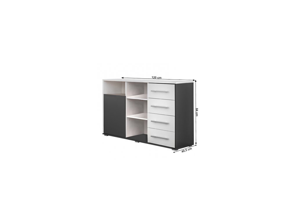 Komoda bude skvělým doplňkem dětského pokoje Masimo..Je vyrobena z vysoce kvalitní DTD laminovaná, odolná vůči poškrábání, vlhkosti a vysokým teplotám. Zboží je dodáváno v demontu.