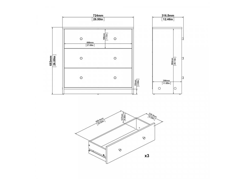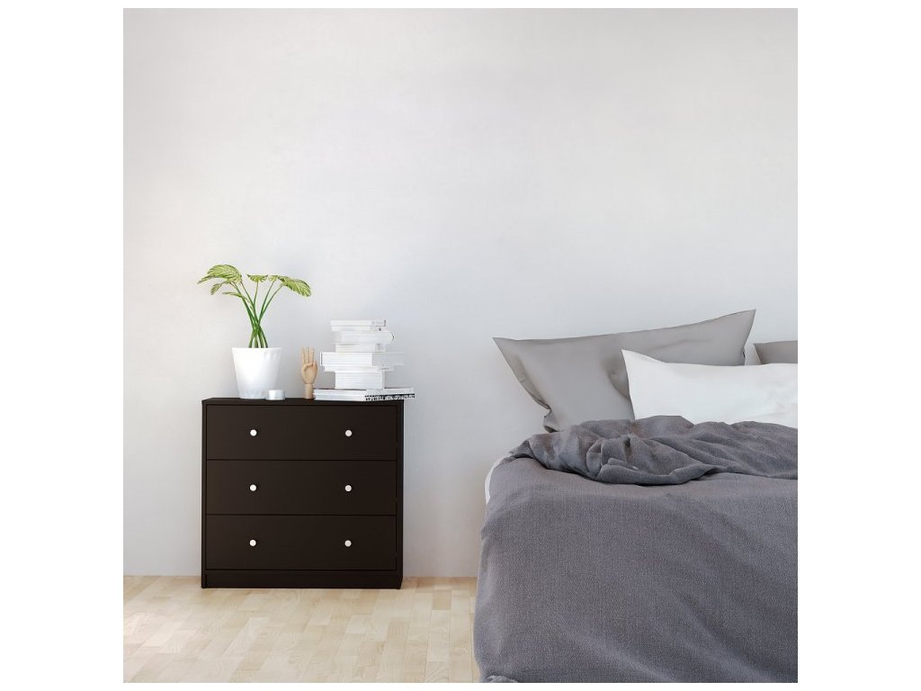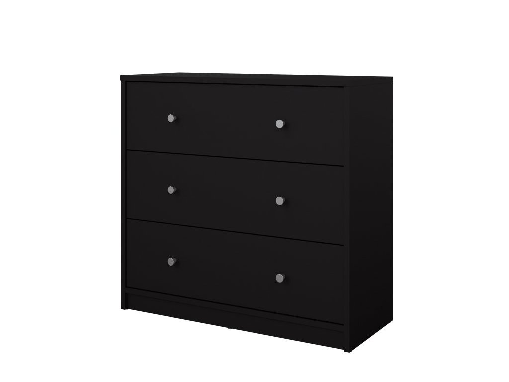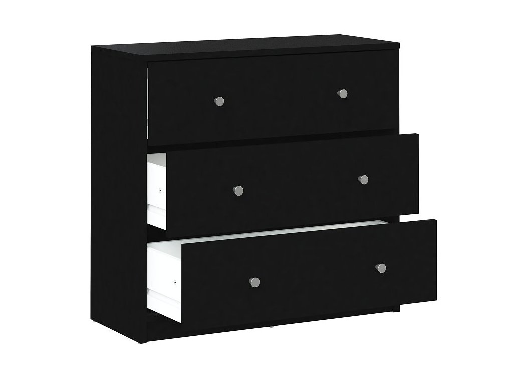 Komoda May 70332 v černé matné barvě. Šuplíky jsou vybaveny plastovými úchytky ve stříbrné barvě. Povrch je odolný vůči poškrábání. Dodáváno v demontu. Tuto komodu nabízíme také v dalším barevném provedení. Ve stejném designu kolekce May nabízíme také další komody a noční stolky.