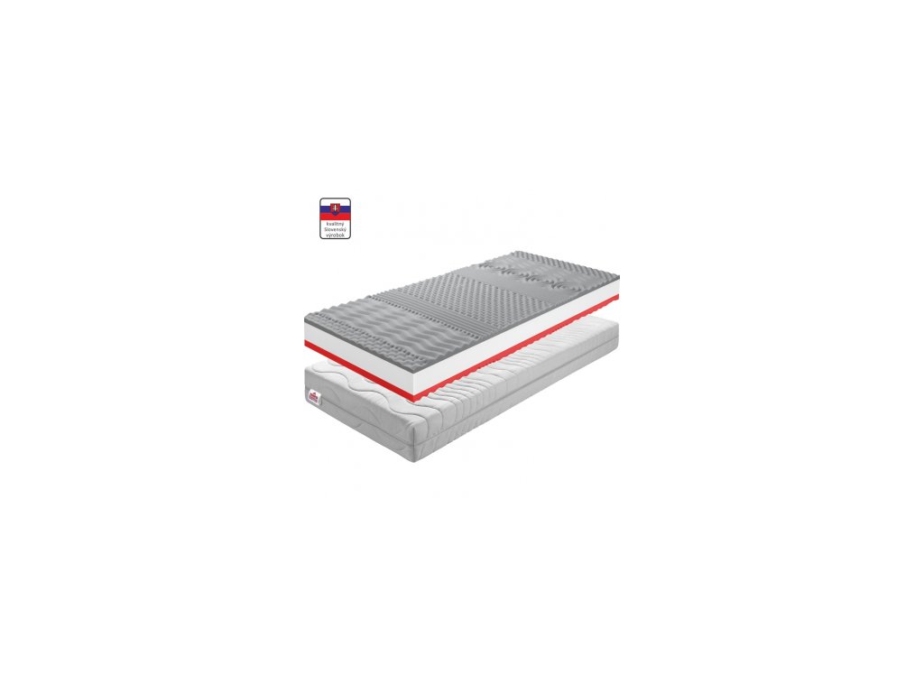 Zdravotní sendvičová matrace s oboustrannou 7 zónovou tuhou profilací z kvalitní PUR pěny v kombinaci s kvalitním jádrem PUR pěny pro lepší vyztužení matrace. Matrace s oboustranným použitím je na povrchu tvarovaná oboustrannou masážní profilací, která zlepšuje prokrvení pokožky a uvolňuje svalstvo během spánku. Potah - Chloe Aktiv je odnímatelný, oboustranný a lze jej prát při teplotě 60° C. Doporučujeme na lamelový rošť.