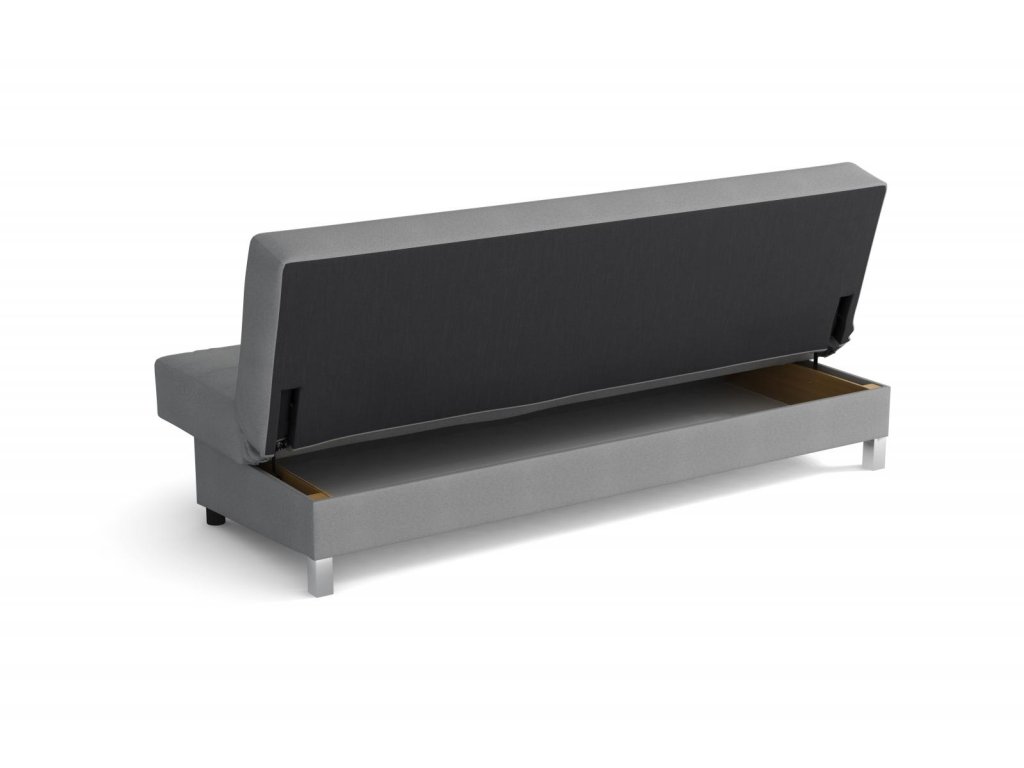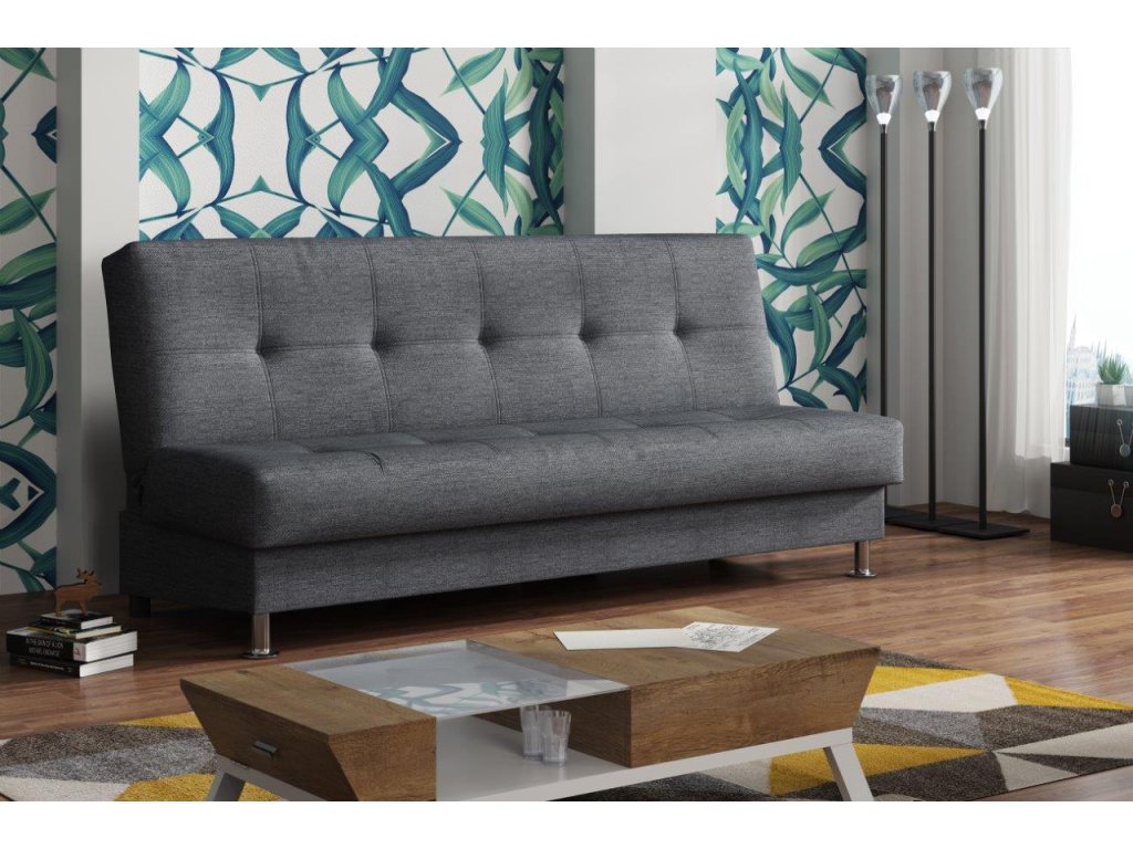 Rozkládací pohovka s praktickým úložným prostorem je vhodná i do malých pokojů. Pohovka je vyrobena v jednoduchém designu. Velmi zajímavým prvkem je prošití pohovky s vtahy na sedáku i opěráku pohovky, díky kterému se látka nemá tendenci zvlňovat. Výplň sedáku tvoří kombinace pružin bonell s kvalitní PUR pěnou. Pohovka je vyrobena z kvalitní látky sametového typu Enjoy (tzv. s vlasem). Jednoduchým rozložením pomocí systému klik-klak vznikne lůžko k občasnému přespání. Z důvodu tohoto rozkladu je pohovka vzadu očalouněna pouze do krycí čalounické látky. Pohovku nabízíme v různých barvách. Dodána bude jako na úvodním obrázku (barva látky lépe odpovídá menší fotce látky). Obrázky rozkladů jsou pouze ilustrační. Zboží je dodáváno vcelku v pozici se sklopenými zády pro lepší manipulaci dveřmi (je potřeba pouze namontovat nožky).