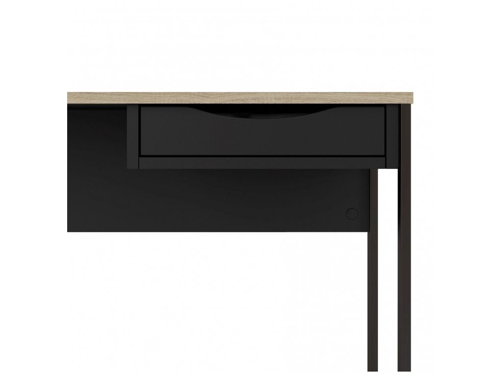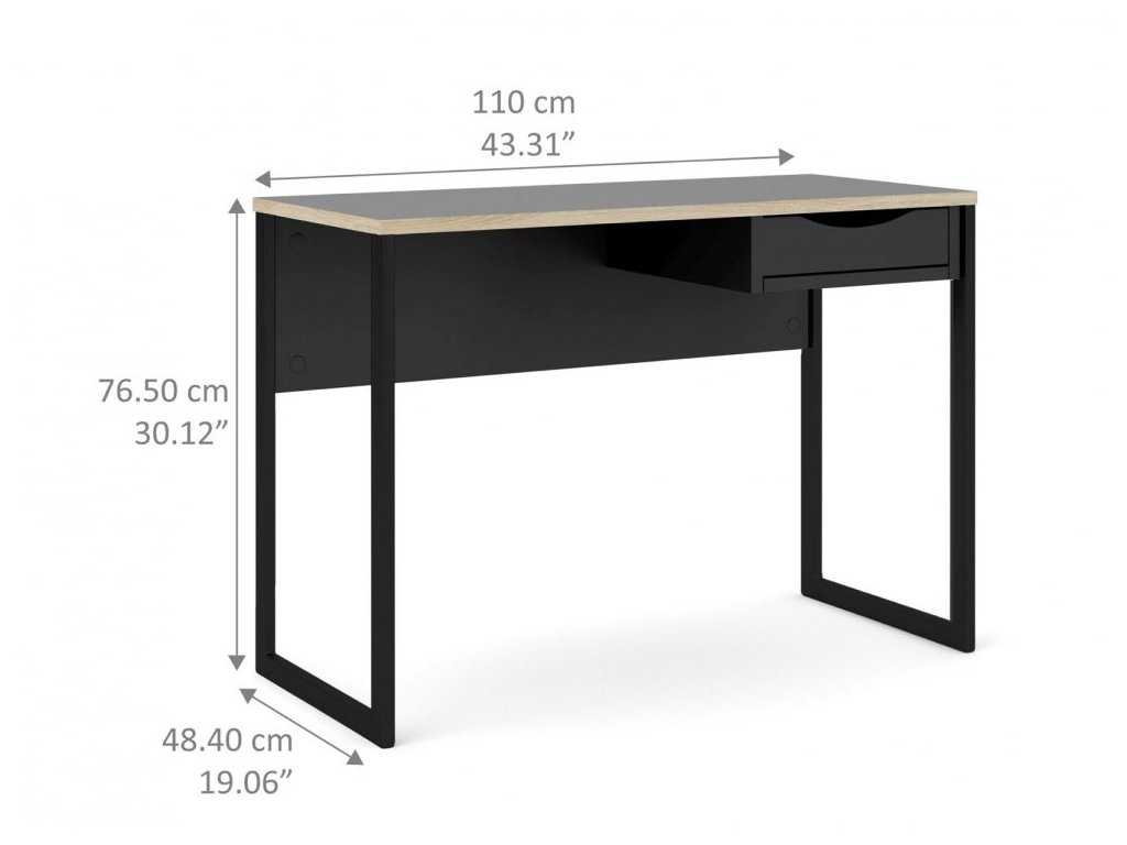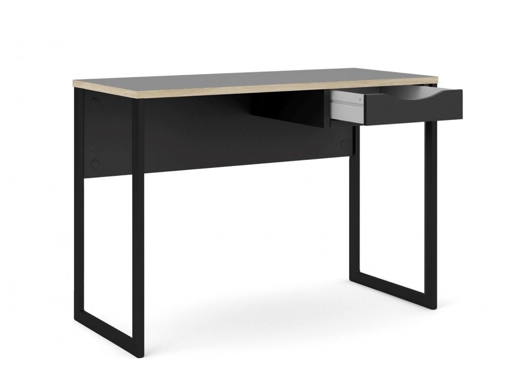 Praktický černý psací stůl se zásuvkou je vyrobený z lamina tloušťky 2,2 cm. Nohy stolu jsou vyrobeny z kovového U profilu. Zboží je dodáváno v demontu se schematickým návodem k montáži. I levný psací stůl může být kvalitní a navíc působí velmi minimalistiky. Tento stůl ze série Function nabízíme také v dalším barevném provedení.