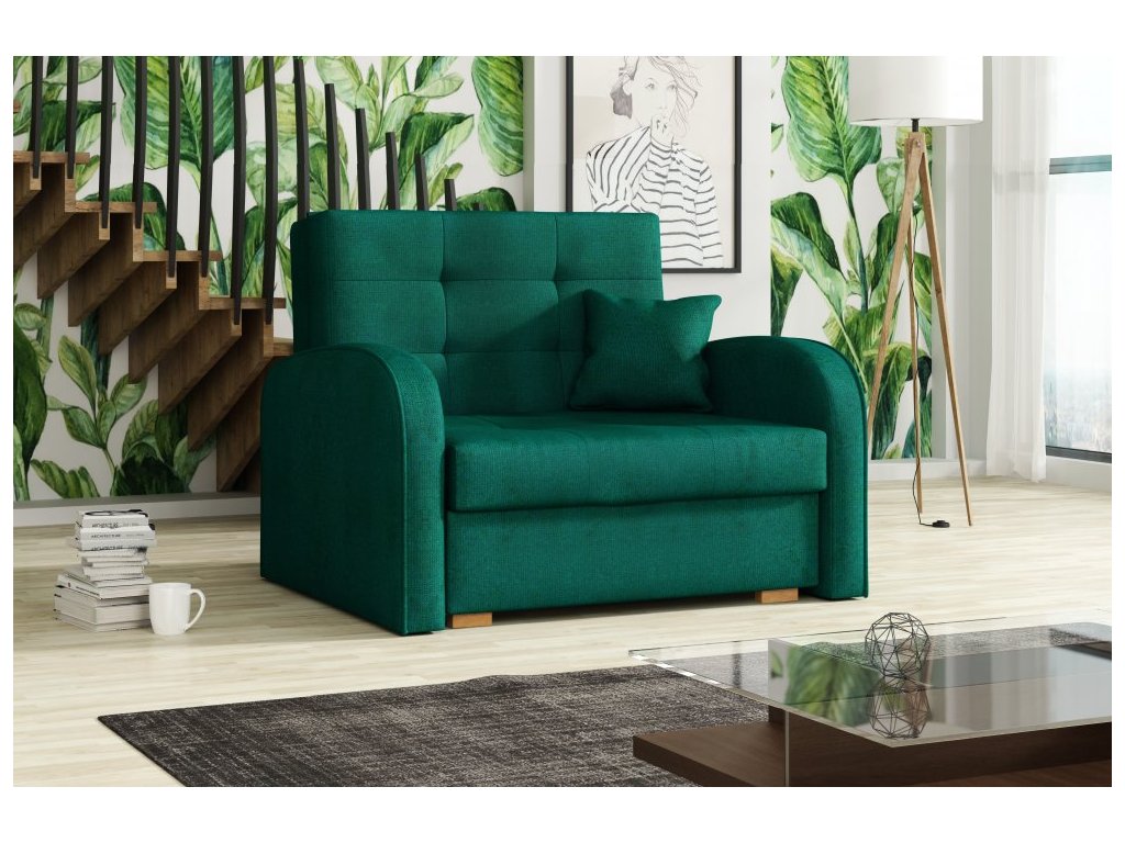 Rozkládací křeslo se díky malým rozměrům bude hodit do dětských, studentských nebo obývacích pokojů. Pohovka je rozkládací s praktickým úložným prostorem a výborně zapadne do každého interiéru. Pohovka je vyrobena v jednoduchém designu. Velmi zajímavým prvkem je prošití opěrky. Výplň sedáku tvoří kombinace vlnitých pružin bonell s kvalitní PUR pěnou. Pohovka je vyrobena z kvalitní látky Kronos 19. Jednoduchým rozložením pomocí automatu vznikne dostatečně prostorné lůžko k občasnému přespání. Vybrat si můžete z několika atraktivních odstínů. Součástí pohovky je jeden dekorační polštář. Další vyobrazené dekorace a doplňky nejsou v ceně. Tuto pohovku/rozkládací křeslo nabízíme v dalších barvách a rozměrech.