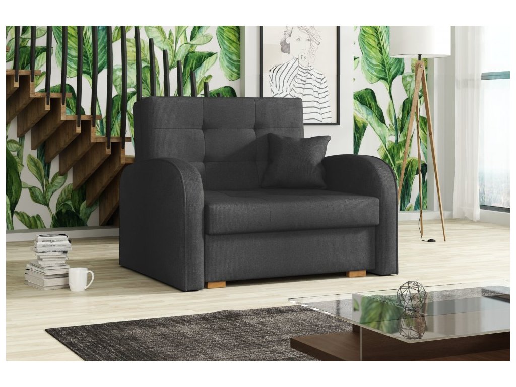 Rozkládací křeslo se díky malým rozměrům bude hodit do dětských, studentských nebo obývacích pokojů. Pohovka je rozkládací s praktickým úložným prostorem a výborně zapadne do každého interiéru. Pohovka je vyrobena v jednoduchém designu. Velmi zajímavým prvkem je prošití opěrky. Výplň sedáku tvoří kombinace vlnitých pružin bonell s kvalitní PUR pěnou. Pohovka je vyrobena z kvalitní látky Kronos 22. Jednoduchým rozložením pomocí automatu vznikne dostatečně prostorné lůžko k občasnému přespání. Vybrat si můžete z několika atraktivních odstínů. Součástí pohovky je jeden dekorační polštář. Další vyobrazené dekorace a doplňky nejsou v ceně. Tuto pohovku/rozkládací křeslo nabízíme v dalších barvách a rozměrech.