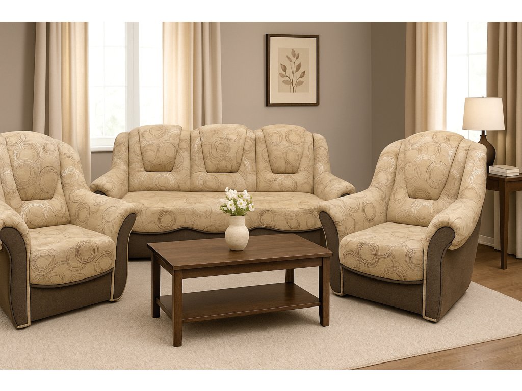 Sedací souprava Bára je velmi oblíbeným klasickým modelem sedací soupravy v provedení 3+1+1. Je velmi pohodlná a zároveň praktická. Sedací souprava je rozkládací a samozřejmostí je i úložný prostor, který můžete využít např. na lůžkoviny. Jednoduchým rozkladem pomocí systému "klik klak" vznikne lůžko k příležitostnému přespání Vaší návštěvy. Sedací souprava je potažena kvalitní látkou, v kombinaci dvou barev. Zadní část trojsedu je očalouněna pouze do krycí látky z důvodu rozkladu. Cena sedací soupravy je uvedena za rozkládací trojsed a dvě křesla.