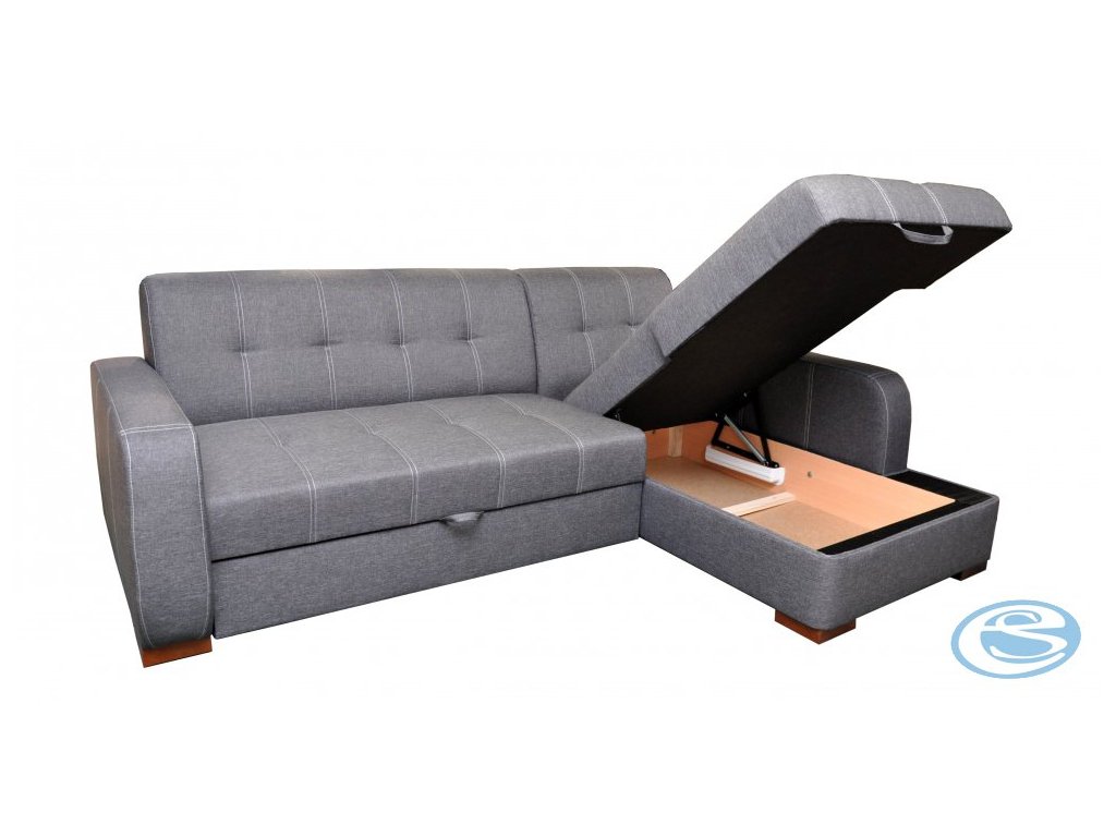 Moderní rohová sedací souprava je rozkládací, jednoduchým rozkladem vznikne lůžko vhodné k příležitostnému spaní. Sedačka má praktický úložný prostor. Sedací souprava je v pravém provedení (v naší nabídce si můžete vybrat také levé provedení). Sedací souprava má originální kontrastní prošívání na sedácích. Sedací souprava je vyrobena z dřevěného masivu, vnitřek sedačky je vyroben použitím vinutých pružin v kombinaci s kvalitní PUR pěnou gramáže 30. Sedací souprava je potažena kvalitní potahovou látkou Berlin (v naší nabídce také další barevné varianty). Na malých ilustračních fotografiích je zobrazen způsob rozkladu a lůžka. Cena je za rohovou sedací soupravu. V případě zájmu je možné dokoupit polštáře, křeslo (požadavek prosím uveďte do poznámky k objednávce).