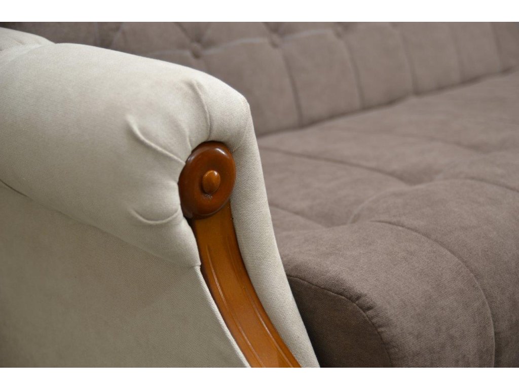 Sedací souprava Petana je stále velmi oblíbeným klasickým modelem sedací soupravy v provedení 3F+1+1. Je velmi pohodlná a zároveň praktická. Sedací souprava je rozkládací a samozřejmostí je i úložný prostor. Jednoduchým rozložením získáte lůžko k příležitostnému přespání Vaší návštěvy. Záda jsou z důvodu rozkladu klik-klak očalouněna pouze do tmavé čalounické látky. Pohodlí při sezení poskytuje vysoká opěrka zad. Sedací souprava je potažena kvalitní látkou, v kombinaci barev " tón v tónu ". Cena sedací soupravy je uvedena včetně 2 taburetů. Tuto sedací soupravu nabízíme také v dalším barevném provedení. V případě zájmu pouze o křeslo, kombinaci 3+1 nebo jinou kombinaci nás neváhejte kontaktovat.