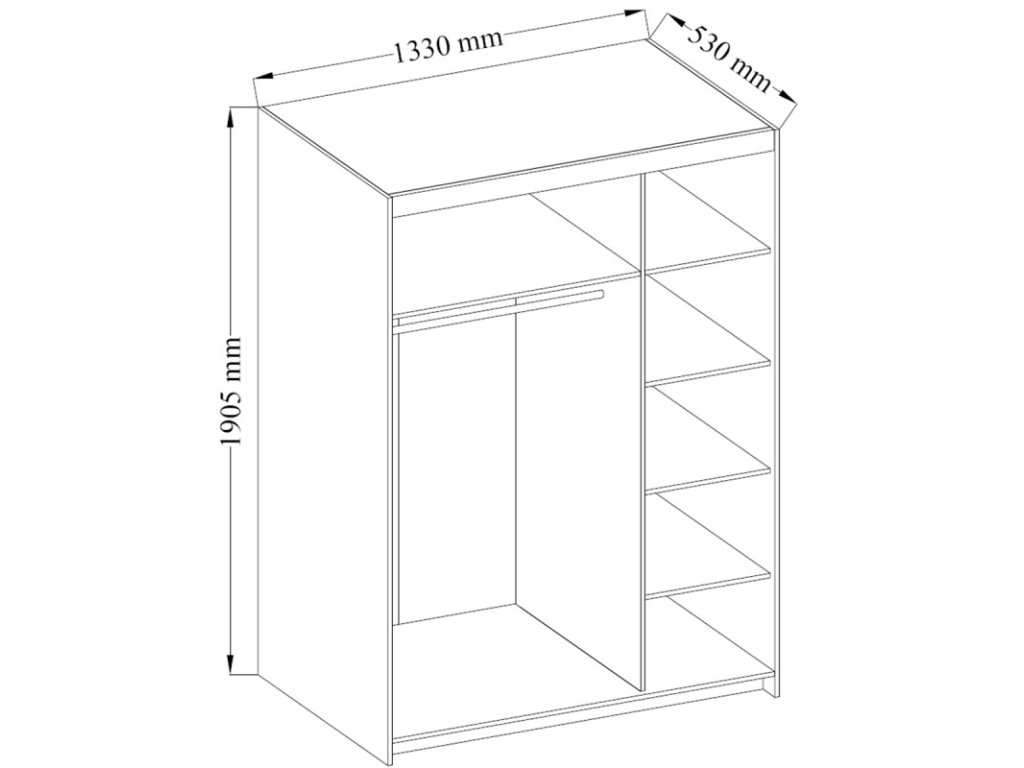 | Úložný prostor: | S policemi, S tyčí |